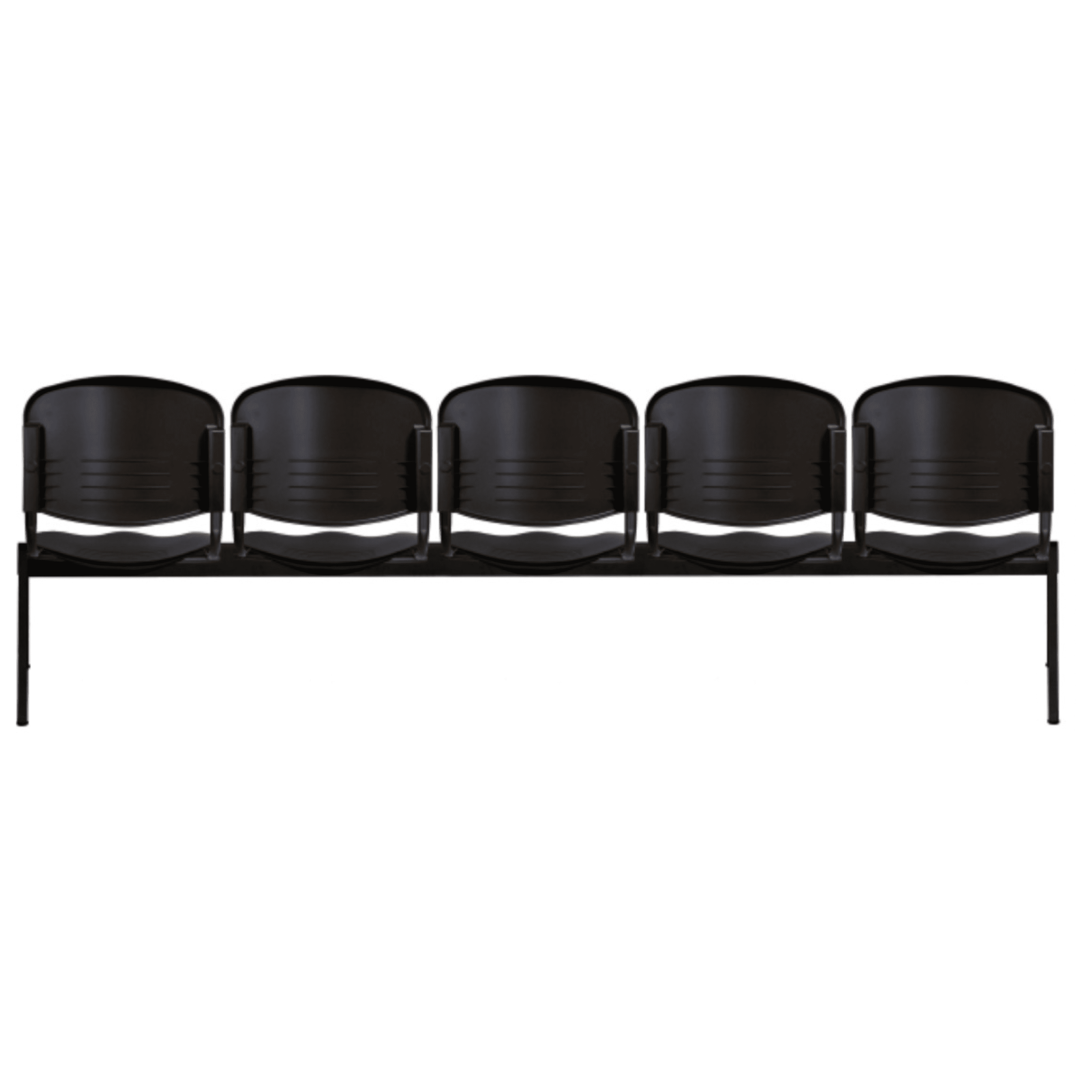Estructura: de acero tubular rectangular de 1 1/2″ X 3″, calibre 16, asientos y respaldos de perfil redondo tubular de acero con travesaños separadores tubulares redondos de acero con acabado de pintura epóxica (electrostática) color negro mate.